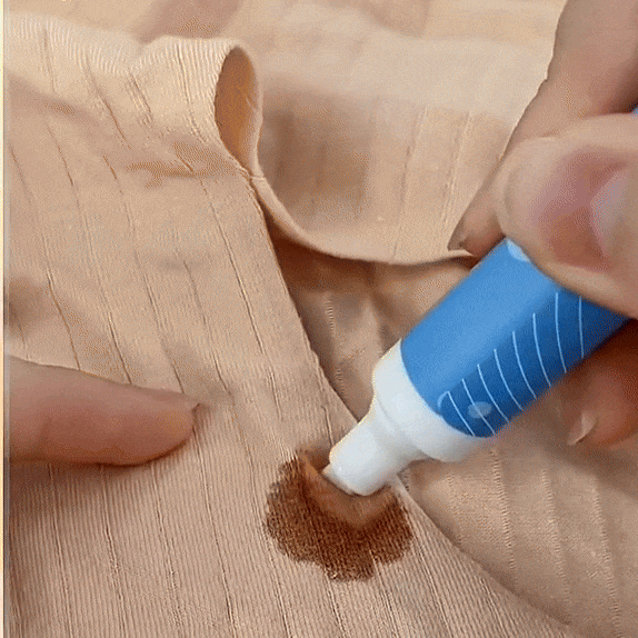 Tryck lätt med pennans borste och massera formulan in i tyget i små cirklar. Den aktiva lösningen löser upp fläcken direkt, så du slipper byta kläder eller starta en tvätt när du egentligen inte har tid. Avsluta genom att torka av området med ett torrt papper.